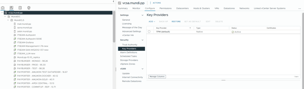 Bu makalede, VMware vCenter altyapısında çalışan sanal makinelere TPM 2.0 (vTPM) ekleme işlemi, doğru Key Provider seçimi ile adım adım anlatılmaktadır.