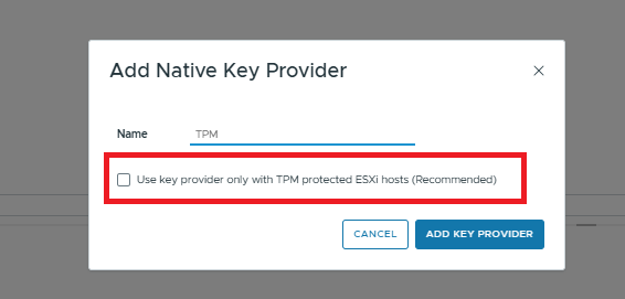 VMware ortamında vTPM çalışabilmesi için Key Provider gereklidir. Ancak Native Key Provider oluşturulurken yapılan kritik bir seçim, işlemin başarısız olmasına neden olur.