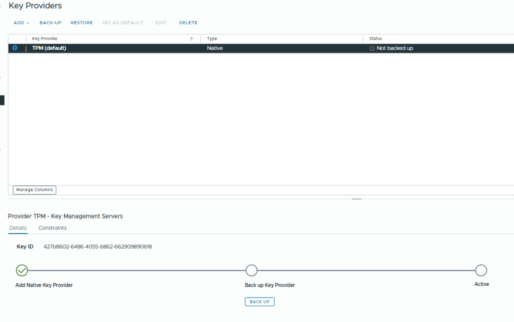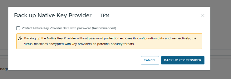 | Use key provider only with TPM protected ESXi hosts | ❌ Evet |