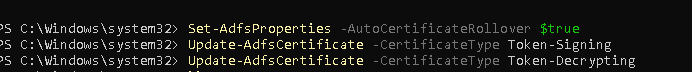 Update-AdfsCertificate : Certificate Rollover is disabled
